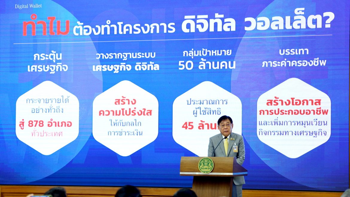 นายพิชัย ชุณหวชิร รองนายกรัฐมนตรีและรัฐมนตรีว่าการกระทรวงการคลัง ได้แถลงเมื่อวันที่ 24 กรกฎาคม 2567 ณ ตึกภักดีบดินทร์ ทำเนียบรัฐบาล ถึงความคืบหน้าสำคัญของโครงการเติมเงิน 10,000 บาท ผ่าน Digital Wallet (โครงการฯ) ว่าหลังจากที่ผ่านมารัฐบาลได้มีการพิจารณารายละเอียดโครงการฯ อย่างรอบคอบ สอดคล้องตามบทบัญญัติของรัฐธรรมนูญแห่งราชอาณาจักรไทย พุทธศักราช 2560 ข้อกฎหมายและระเบียบต่าง ๆ ที่เกี่ยวข้อง พร้อมนำความเห็นหน่วยงานต่าง ๆ มาประกอบการพิจารณาอย่างรอบคอบและรัดกุมนั้น โครงการฯ มีความพร้อมที่จะขับเคลื่อนเศรษฐกิจแล้ว โดยโครงการนี้มีวัตถุประสงค์ที่สำคัญเพื่อส่งเสริมให้มีเม็ดเงินหมุนเวียนในพื้นที่ และช่วยบรรเทาภาระค่าครองชีพ ยกระดับคุณภาพชีวิตให้ประชาชน ส่งเสริมให้ประชาชนและชุมชนมีความเข้มแข็งในด้านเศรษฐกิจ สามารถพึ่งพาตนเองได้ สร้างและเพิ่มโอกาสในการประกอบอาชีพ รวมทั้งส่งเสริมและสนับสนุนการพัฒนาให้เกิดนวัตกรรมด้านเทคโนโลยีดิจิทัลเพื่อประโยชน์ต่อเศรษฐกิจและสังคม ซึ่งเมื่อเริ่มดำเนินโครงการฯ แล้ว จะก่อให้เกิดพายุหมุนทางเศรษฐกิจจำนวน 4 ลูก ได้แก่ พายุหมุนลูกที่ 1 การใช้จ่ายระหว่างประชาชนกับร้านค้าขนาดเล็ก ถือเป็นกระตุ้นเศรษฐกิจไปยังฐานราก กระจายไปพร้อมกันทุกอำเภอทั่วประเทศ ช่วยบรรเทาความเดือดร้อน ลดภาระค่าใช้จ่ายแก่ประชาชน พายุหมุนลูกที่ 2 การใช้จ่ายระหว่างร้านค้าขนาดเล็กกับร้านค้าขนาดใหญ่ และพายุหมุนลูกที่ 3 การใช้จ่ายระหว่างร้านค้าขนาดใหญ่กับร้านค้าขนาดใหญ่ ซึ่งจะทำให้เกิดการต่อยอดกำลังซื้อ การบริโภค หรือสร้างโอกาสในการลงทุนเพื่อประกอบอาชีพ และพายุหมุนลูกที่ 4 พลังการใช้จ่ายของประชาชนแต่ละคนจะเกิดผลต่อการหมุนเวียนของกิจกรรมทางเศรษฐกิจเป็นทวีคูณ ช่วยฟื้นฟูภาคการผลิตของประเทศ และสร้างความเชื่อมั่นต่อระบบเศรษฐกิจในภาพรวม