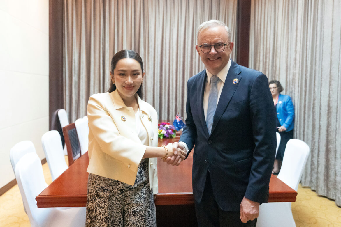 วานนี้ (11 ตุลาคม 2567) เวลา 12.15 น. นางสาวแพทองธาร ชินวัตร นายกรัฐมนตรี หารือทวิภาคีกับนายแอนโทนี อัลบาเนซี (The Honourable Anthony Albanese MP) นายกรัฐมนตรีเครือรัฐออสเตรเลีย ปลื้ม “หมูเด้ง” ช่วยสร้างความโดดเด่นให้กับการท่องเที่ยว ชื่นชมไทยมี พ.ร.บ.สมรสเท่าเทียม ขณะที่นายกรัฐมนตรีขอบคุณที่ดูแลคนไทยกว่า 100,000 คน รวมถึงนักเรียนกว่า 25,000 คน ซึ่งรัฐบาลไทยให้ความสำคัญต่อการส่งเสริมการศึกษาในทุกระดับ