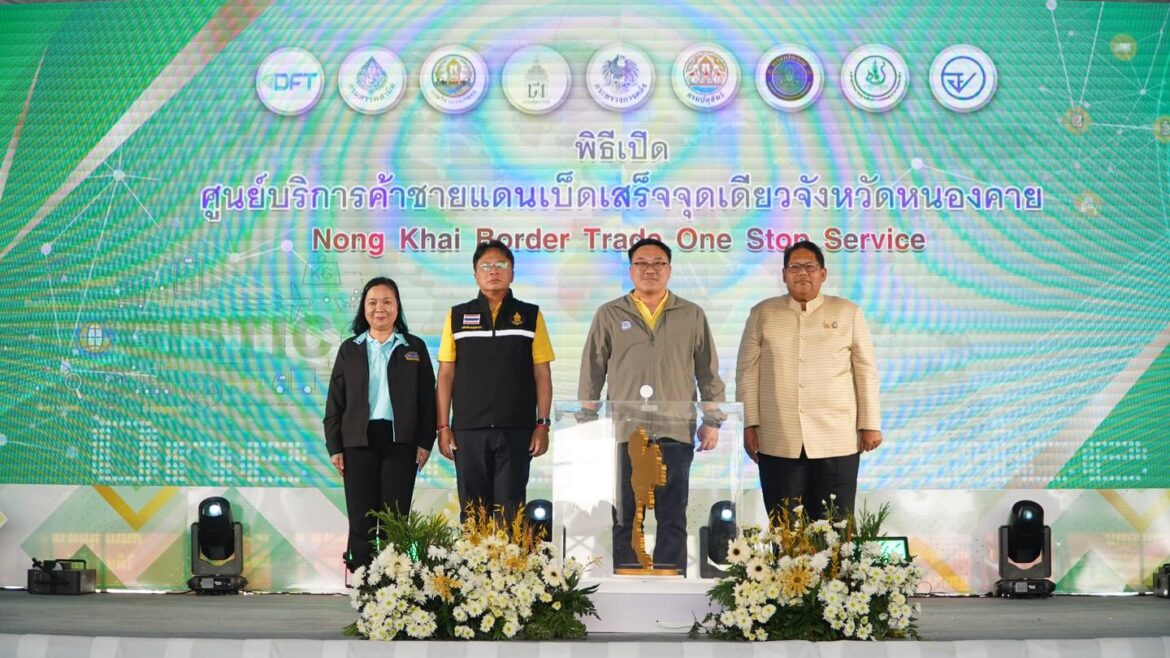 นายธีรัชย์ อัตนวานิช อธิบดีกรมศุลกากร กล่าวเสริมว่า ตามมติคณะรัฐมนตรีวันที่ 7 พฤษภาคม 2567 ที่ประชุมเห็นชอบให้กระทรวงการคลังร่วมกับกระทรวงเกษตรและสหกรณ์ กระทรวงอุตสาหกรรม กระทรวงสาธารณสุข กระทรวงพาณิชย์ และหน่วยงานที่เกี่ยวข้องเร่งวางแผนและดำเนินการเร่งรัด กำกับติดตามการดำเนินการต่าง ๆ ในภาพรวม เพื่อให้การจัดตั้งศูนย์บริการค้าชายแดนเบ็ดเสร็จ (One Stop Service : OSS) ณ สำนักงานศุลกากรหนองคายแล้วเสร็จโดยเร็วเป็นแห่งแรก กรมศุลกากรในฐานะที่เป็นหน่วยงานในสังกัดกระทรวงการคลังและเป็นหน่วยงานหลักซึ่งปฏิบัติหน้าที่ตรวจปล่อยสินค้าในพื้นที่ด่านชายแดน ได้เร่งดำเนินการเพื่อก่อตั้งศูนย์บริการค้าชายแดนเบ็ดเสร็จจุดเดียว จังหวัดหนองคาย (Nong Khai Border Trade One Stop Service : NKBTOSS) แห่งนี้จนสำเร็จ โดยบูรณาการร่วมกับ 8 หน่วยงาน ประกอบด้วย สำนักงานศุลกากรหนองคาย สำนักงานพาณิชย์จังหวัดหนองคาย สำนักงานอุตสาหกรรมจังหวัดหนองคาย สำนักงานสรรพสามิตพื้นที่หนองคาย ด่านตรวจพืชหนองคาย ด่านกักสัตว์หนองคาย ศูนย์บริหารจัดการด่านตรวจประมงเขต 2 และด่านอาหารและยาหนองคาย