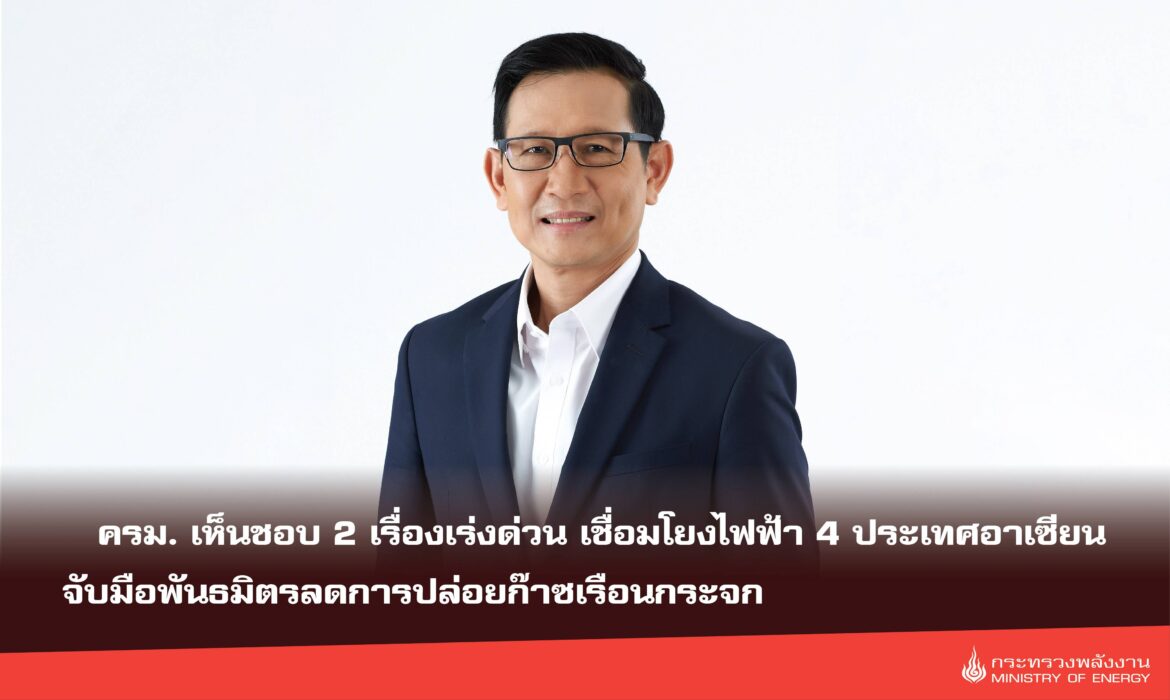 15 ตุลาคม 2568 ครม. มีมติเห็นชอบร่างถ้อยแถลงร่วมสำหรับโครงการบูรณาการด้านไฟฟ้าระหว่าง สปป.ลาว ไทย มาเลเซีย และสิงคโปร์ ฉบับที่ 6 และแถลงการณ์ร่วมสำหรับการประชุมระดับรัฐมนตรีกลุ่มพันธมิตรเอเชียเพื่อลดการปล่อยก๊าซเรือนกระจกเป็นศูนย์(เอเซค) ครั้งที่ 3 ตามที่ “พลังงาน” เสนอ