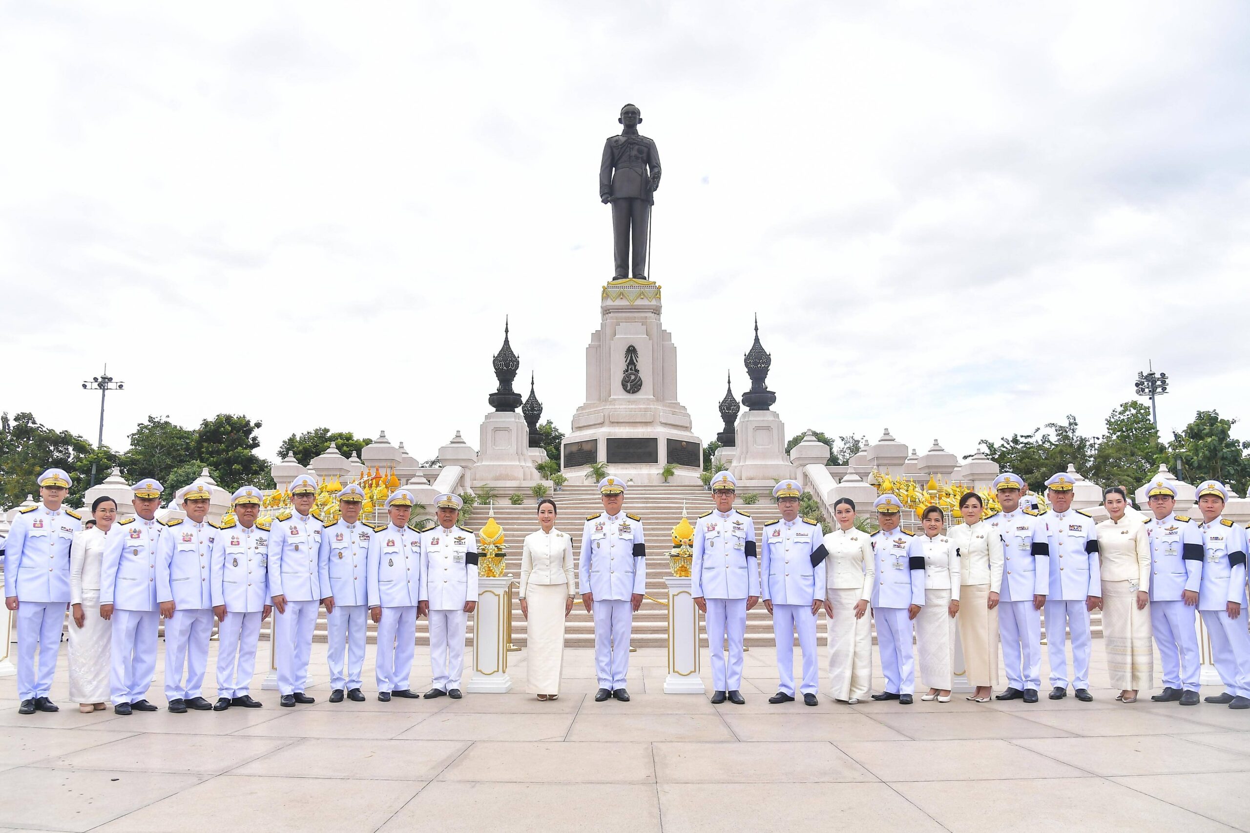 เมื่อเดินทางถึงอุทยานเฉลิมพระเกียรติฯ นายกรัฐมนตรีและนางสาวธนนนท์ นิรามิษ คณะรัฐมนตรีและคู่สมรส เลขาธิการนายกรัฐมนตรี เข้าประจำที่ด้านหน้าพระบรมราชานุสาวรีย์พระบาทสมเด็จพระบรมชนกาธิเบศร มหาภูมิพลอดุลยเดชมหาราช บรมนาถบพิตร ถวายความเคารพ นายกรัฐมนตรีวางพานพุ่มดอกไม้ จำนวน 2 พาน ในนาม นายกรัฐมนตรี และคณะรัฐมนตรี นางสาวธนนนท์ นิรามิษ วางพานพุ่มดอกไม้ในนาม คณะคู่สมรสคณะรัฐมนตรี เสร็จพิธี