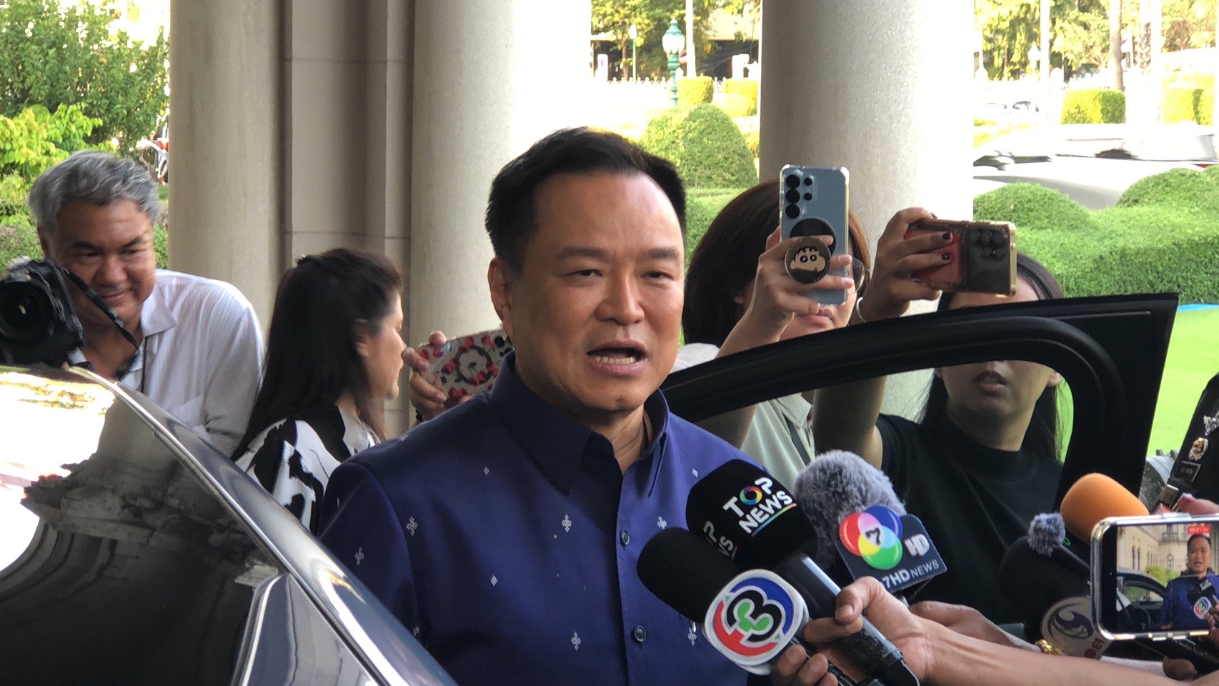 เมื่อถามว่าจะพิจารณาเป็นภาวะฉุกเฉินหรือไม่ นายกรัฐมนตรี ส่ายหน้า ก่อนขึ้นรถ